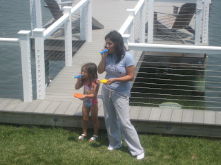 Playing with bubbles. We did this a lot. I bought a variety of fun wands and this was a great afternoon activity with the kids.