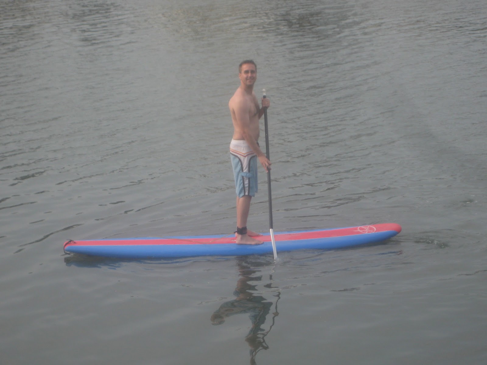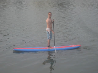 Hubby paddle boarding. He had a lot of fun with this until he lost his glasses.